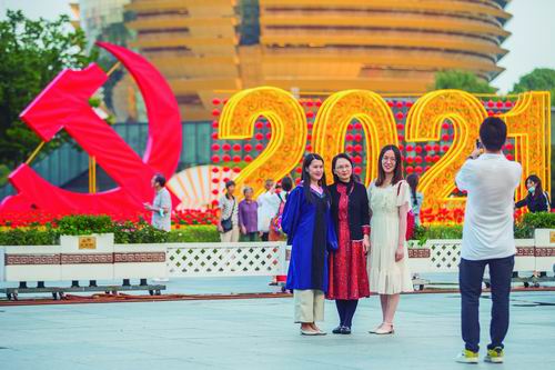 近日,各地举办丰富多彩的活动庆祝中国共产党成立100周年,到处洋溢着喜庆氛围。图片来源:视觉中国