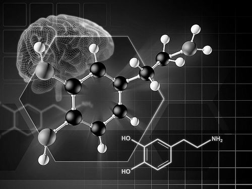 多巴胺分子与大脑。 图片来源:Andrea Danti / stock.adobe.com