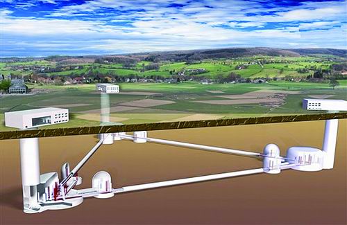 爱因斯坦望远镜将被埋在地下几百米,以隔绝噪声。图片来源:爱因斯坦望远镜概念设计团队