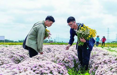 近日,在海南三亚海棠湾水稻国家公园内,近28万株菊花含苞待放,吸引了各地游客。这是南京农业大学菊花研发团队将菊花引种到海南三亚进行南繁。