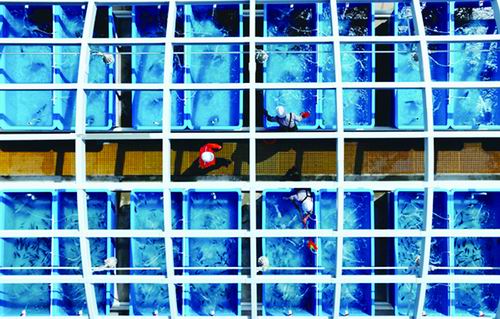 大鹏接收站利用液化天然气产生的冷海水开展养殖项目。王小可/摄