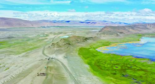 左侧为几近干涸的嘎拉错,右侧为水域面积不到1.5平方公里的玛不错。兰州大学供图