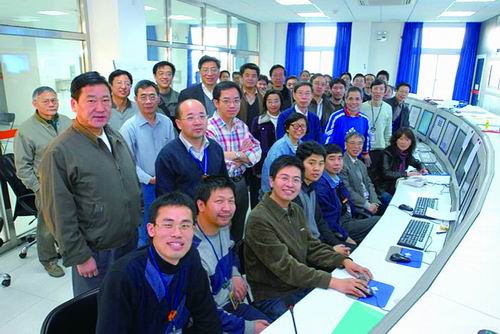 2006年11月18日凌晨5点多,北京正负电子对撞机经过重大改造后,成功实现电子束在储存环中的积累,科研人员在控制室记录了这一时刻。