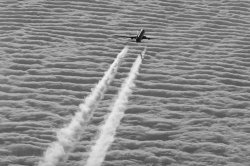 喷气发动机的尾迹会增加飞行的变暖效应。图片来源:Alamy