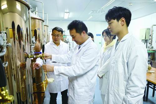 2016年,南阳理工学院与京德啤酒合作共建了河南省首批特色行业学院——生态酿酒行业学院。该学院采取 “双导师+项目制”培养模式,与德国柏林酿造学院深度合作。李慧星介绍,学院学生不仅能够在企业实操酿酒,还有来自德国柏林酿造学院的导师亲自授课。目前,该学院已累计培养酿酒师、品酒师1000余人。