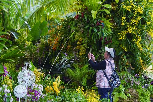 记者获悉,今年花展共展出来自海外的热带兰、原产我国的传统国兰和华南国家植物园自主培育的各类兰花共计600余种。除了各色各样的兰花外,在今年主题花展中,九大色系30多个品种1000余盆“花中之王”——牡丹花,以及30多个品种6000余株“世界名花”郁金香也齐齐亮相。图为游客在参观珍奇兰花展。