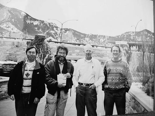 杨通进(左一)在美国科罗拉多州立大学与罗尔斯顿(左三)等合影。
