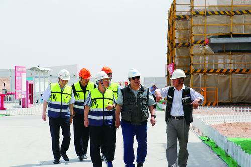 2020年7月9日,徐洪杰(右二)查看钍基熔盐堆实验堆施工情况。 上海应物所供图