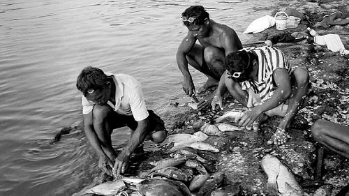 在印度尼西亚,人们在清理来自珊瑚礁的渔获物。图片来源:Joshua Cinner