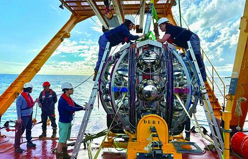 2023年2月13日,深海宇宙线天体粒子研究探测器发现了高能缪子的信号。相关证据表明,该缪子起源于在探测器附近相互作用的宇宙中微子。研究人员估计,该缪子能量约为120拍电子伏(PeV,1PeV=1015电子伏),而产生这个缪子的中微子能量甚至更高,约为220PeV,其能量约为此前探测结果的20倍。
