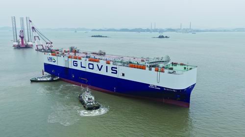 近日,单船运载万辆汽车的液化天然气(LNG)双燃料汽车运输船(PCTC)1号船在广州南沙出坞。记者获悉,该船由中船集团旗下广船国际为韩国公司建造,是目前国内建造的最大汽车运输船。