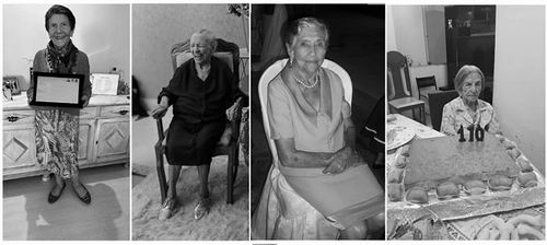 巴西长寿家族,从左至右为106岁的Laura Oliveira、104岁的妹妹Fidelcina、101岁的妹妹Maria,以及110岁的姑姑Geny。图片来源:《自然》
