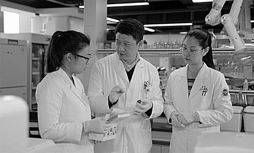 胡海(中)与团队成员交流。中国科学院杭州医学研究所供图
