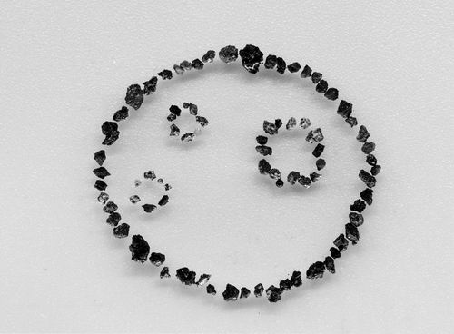▲田恒次团队用玄武岩摆成月球SPA撞击盆地形状的图片。SPA撞击坑里还有很多小的撞击坑。