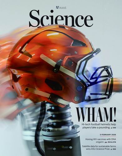 在最新一期《科学》封面中,一个气动冲头猛烈撞击着橄榄球头盔。这是美国Biocore公司进行的一项测试,该公司负责对美国国家橄榄球联盟的头盔进行安全评级。此类测试推动了头盔设计领域的创新浪潮,如今的头盔采用新理念和材料,能够以前所未有的效率吸收冲击力。(王铄)