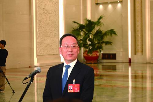 李乐成在首场“部长通道”上答记者问。赵广立/摄