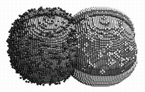 计算机生成的模拟细胞早期分裂阶段示意图。图片来源:Zane Thornburg