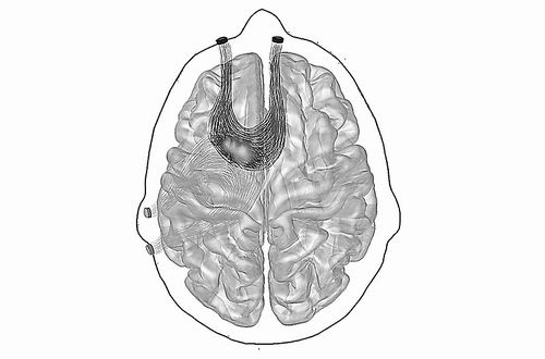 电极产生的高频电流可以改变大脑的神经活动。图片来源:ERIN SCHAEFFER