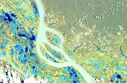 国际空间站上的一台仪器绘制的亚马孙地区植被图。图片来源:NASA