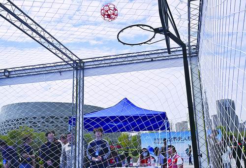 图为无人机“投篮”比赛,因具有互动性与观赏性,引来不少观众围观。图片来源:视觉中国