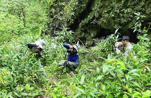 近日,记者从中国科学院华南植物园获悉,该园科研团队在执行“广东植物多样性全域调查与评估”项目任务期间,在广东省乐昌市南岭地区首次发现国家一级重点保护野生植物——大黄花虾脊兰(Calanthe sieboldii)的野生种群。该植物素有“植物界金丝猴”之称。这是广东省首次记录到该物种的野生分布,对完善区域保护植物名录及植物区系地理研究具有重要意义。图①为大黄花虾脊兰野生种,图②为科研人员开展野外调查。本报记者朱汉斌 通讯员黄瑞兰报道