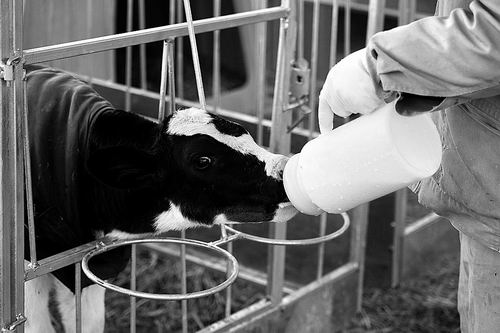 根据“初乳124原则”,标准化示范牧场在犊牛出生一小时内人工灌服初乳4升。韩覃/摄